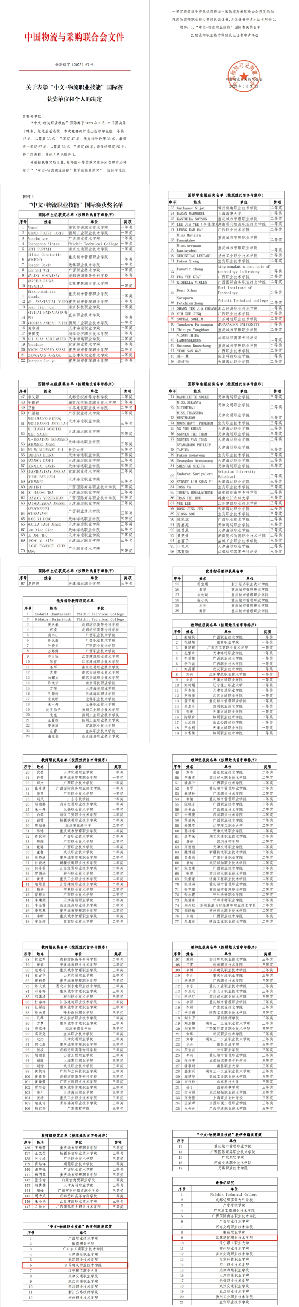 6月1日,中国物流与采购联合会公布了首届“中文+物流职业技能”国际赛获奖名单,我校师生获得多个奖项。国际学生组获得一等奖一项、二等奖三项、三等奖一项,其中指导教师乔万冠和陈雪获得优秀指导教师奖;教师组获得一等奖一项、二等奖一项、三等奖三项。同时,我校获得“中文+物流职业技能”教学创新典范奖、最佳组织奖。