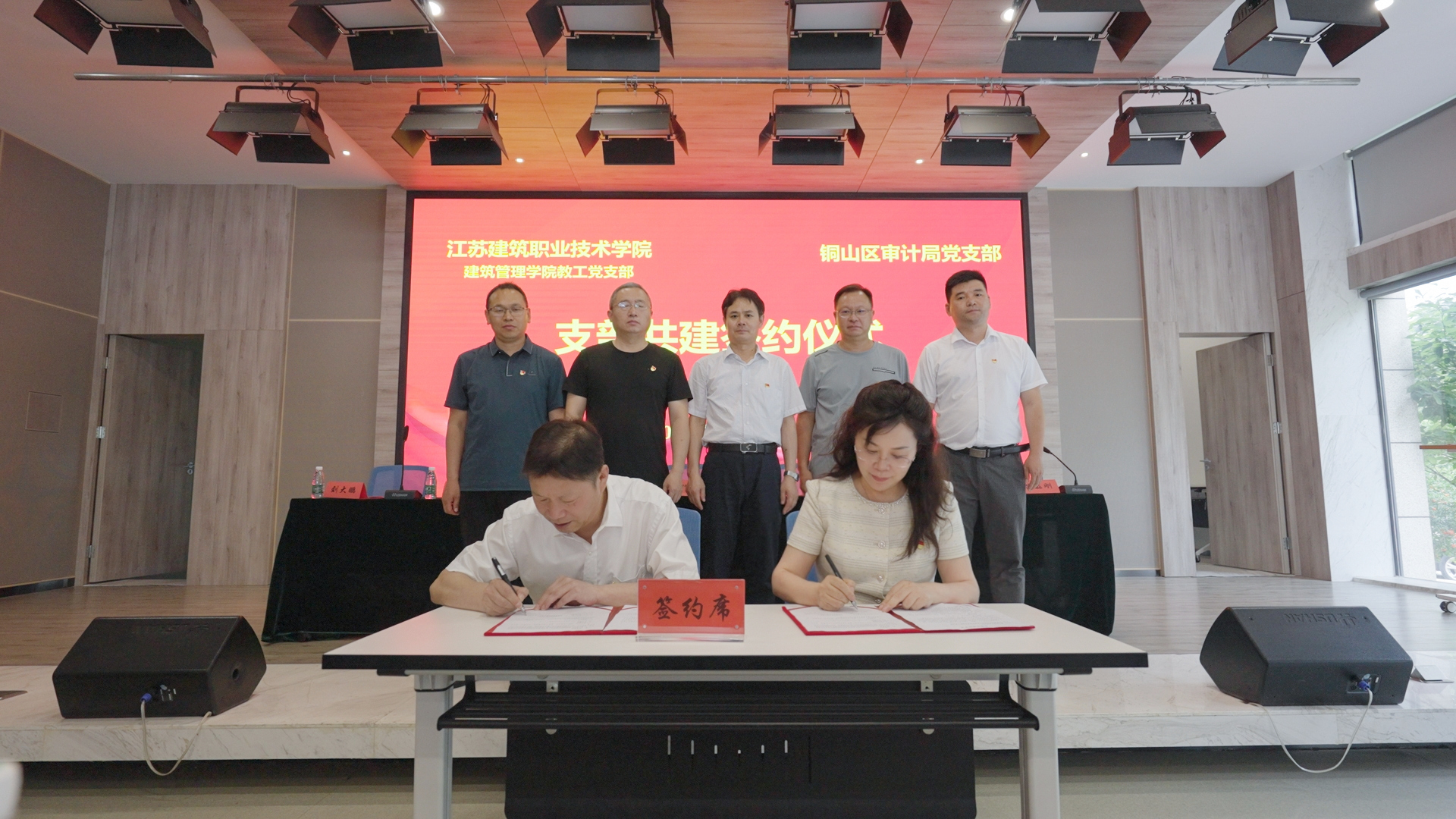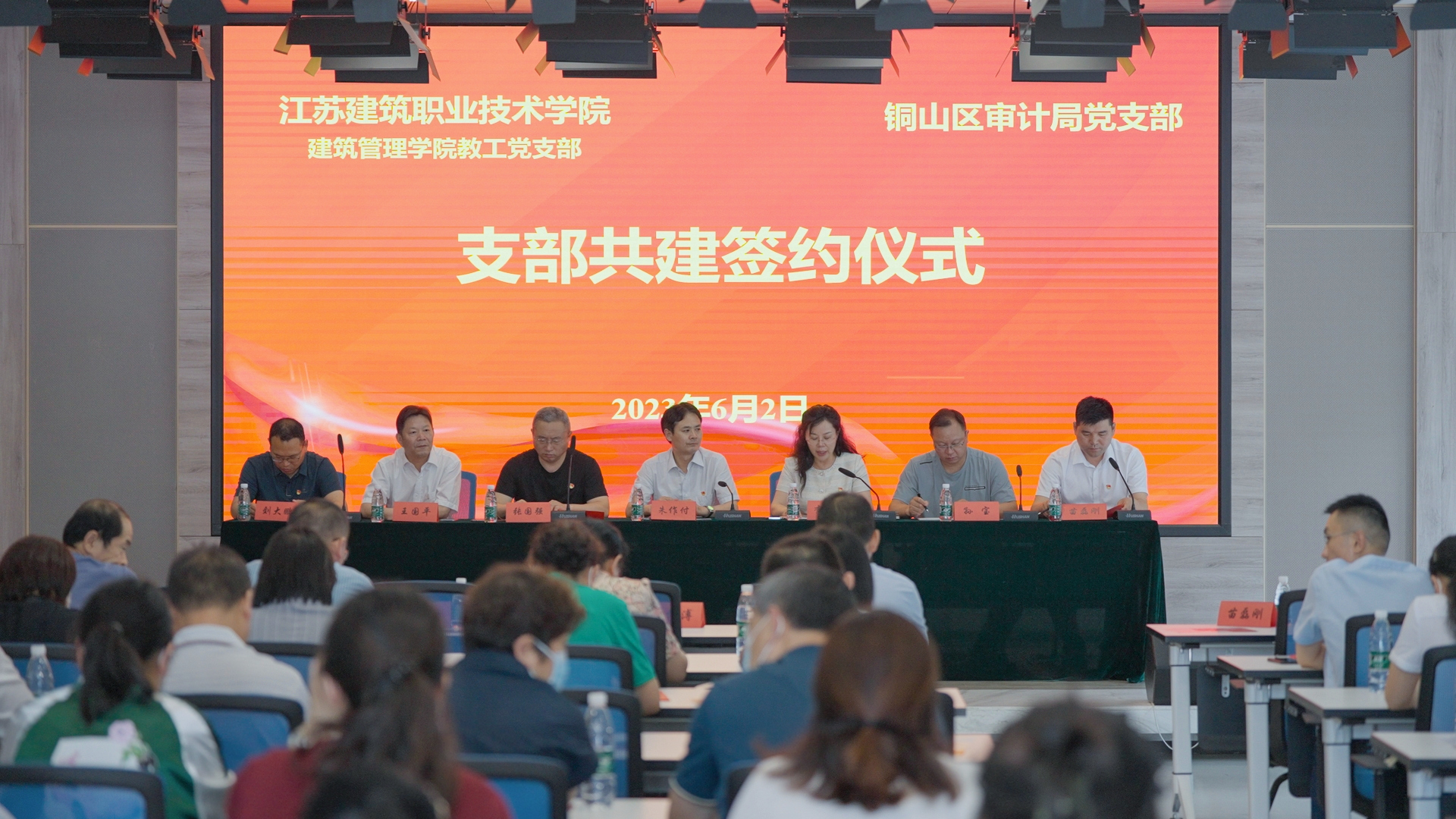 为全面贯彻党的二十大精神,扎实开展学习贯彻习近平新时代中国特色社会主义思想主题教育,探索校地党建共建新模式,6月2日下午,我校建筑管理学院教工党支部与铜山区审计局党支部开展“共‘铜’学习,相融互促,共‘建’新局”主题党日活动暨党建共建签约仪式。校党委委员、纪委书记朱作付,铜山区审计局党组书记、局长李海燕,副局长张国强,副局长、党支部书记孙宝,铜山区审计局党支部和建筑管理学院教工党支部全体党员参加此次仪式。会议由建筑管理学院院长苗磊刚主持。