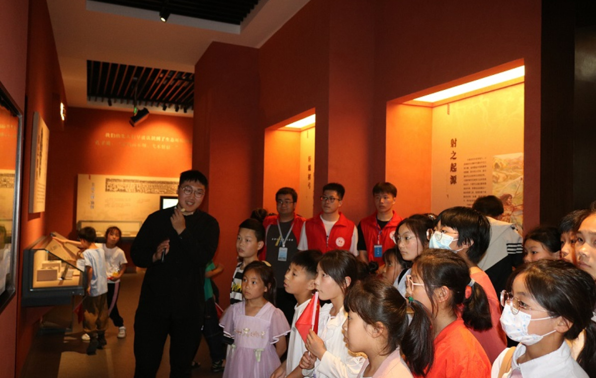 欢迎仪式结束后,向日葵读书点的师生们参观了我校中国礼射文化展览馆、射艺场、建筑技术馆等文化场所。在中国礼射文化展览馆里,孩子们参观了馆内千余件馆藏展品,了解了礼射的起源、发展和复兴,充分感受礼射文化。在射艺场上,孩子们在校礼射协会队员的指导下学习拉弓、射箭,箭射出去的那一刻,孩子们的兴奋之情溢于言表。在图书馆内,孩子们跟随志愿者们参观了图书阅览借还区、报刊阅览区、研讨室、自修室、国学馆、数字图书馆体验中心等,徜徉在书的海洋中,感受着浓浓的书香气息和校园文化氛围。在建筑技术馆中,古今中外著名建筑模型的观摩和智慧家居的体验,丰富了孩子们建筑文化视野,普及了智能科技知识,孩子们意犹未尽,纷纷开始畅想未来的智慧生活。