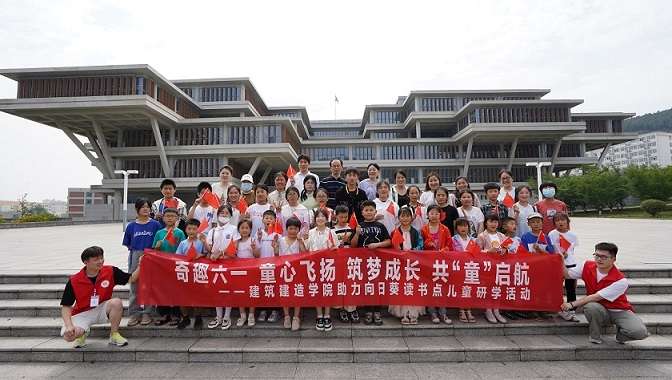 近日,华体会体育建筑建造学院为了帮助邳州市向日葵读书点的小朋友们过一个有意义的儿童节,特别邀请38名小朋友、老师来到学校开展“奇趣六一,童心飞扬,筑梦成长,共‘童’启航”研学活动,感受高校的文化底蕴,体验大学校园生活。