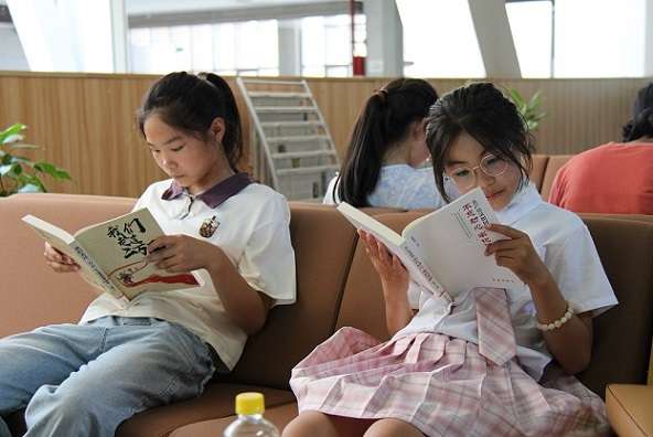 在图书馆内,孩子们跟随志愿者参观了图书阅览借还区、报刊阅览区、研讨室、自修室、国学馆、数字图书馆体验中心等,感受到浓浓的书香气息和校园文化氛围。