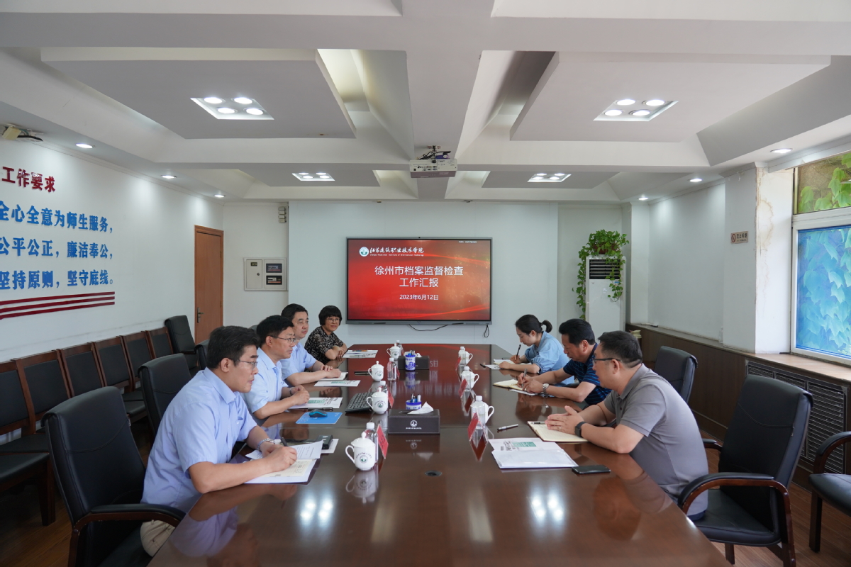 6月12日下午,徐州市档案馆副馆长吴继永、市委办公室档案管理处处长丁晨、市档案馆管理利用处徐楠三人到校监督检查档案管理工作。党委副书记、校长沈士德主持召开了档案管理工作情况汇报会,党政办公室有关同志参加了会议。