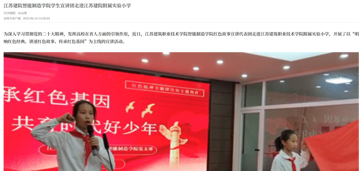 为深入学习贯彻党的二十大精神,发挥高校在育人方面的引领作用,近日,华体会体育智能制造学院红色故事宣讲代表团走进华体会体育附属实验小学,开展了以“唱响红色经典、讲述红色故事、传承红色基因”为主线的宣讲活动。