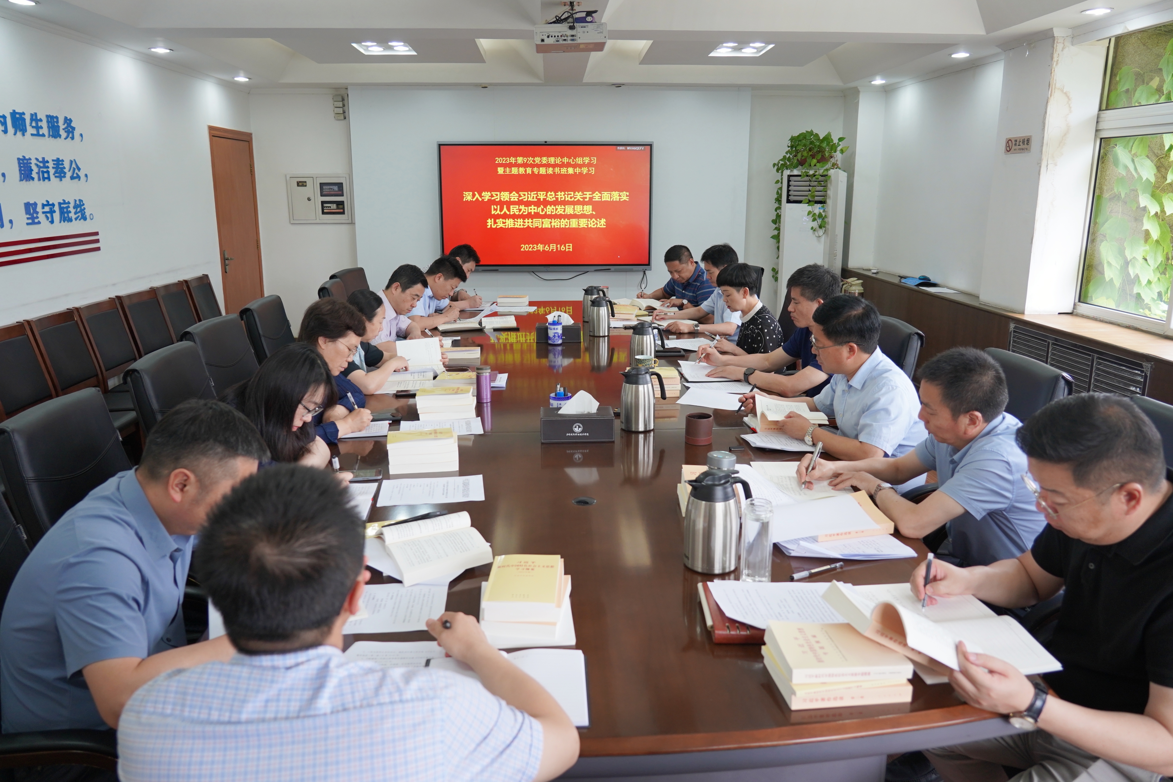 6月16日上午,学校党委理论学习中心组在行政楼第一会议室召开2023年第9次党委理论中心组学习暨主题教育专题读书班集中学习辅导,学习主题为“深入学习领会习近平总书记关于全面落实以人民为中心的发展思想、扎实推进共同富裕的重要论述”。党委书记朱东风主持会议,校党委理论学习中心组成员参加学习。