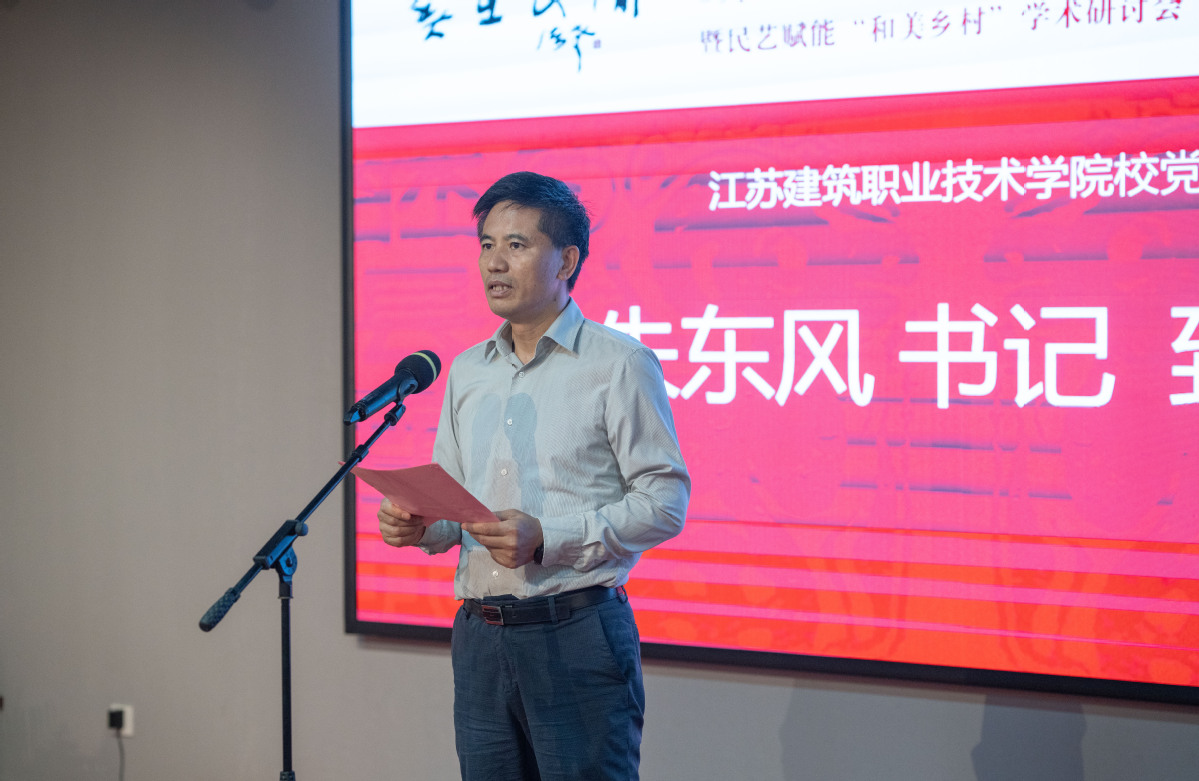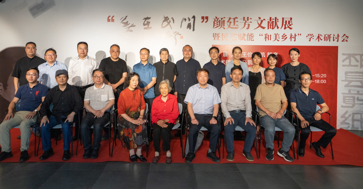 6月19日,由我校和徐州青年美术家协会主办、南京无界广告传媒有限公司协办的“美在民间”颜廷芳文献展暨民艺赋能“和美乡村”学术研讨会在赵绪成艺术馆举行。江苏省非物质文化遗产保护协会副会长、东南大学艺术学院胡平,中国美术学院博士生导师吴光荣,校党委书记朱东风,副校长刘海波,徐州文广局非遗处处长朱泓,徐州市美术家协会主席高洪啸,国家级非物质文化遗产代表性传承人王桂英,在徐兄弟院校领导专家,艺术设计学院全体教师和部分学生代表出席开幕式。开幕式由艺术设计学院院长王俭主持。