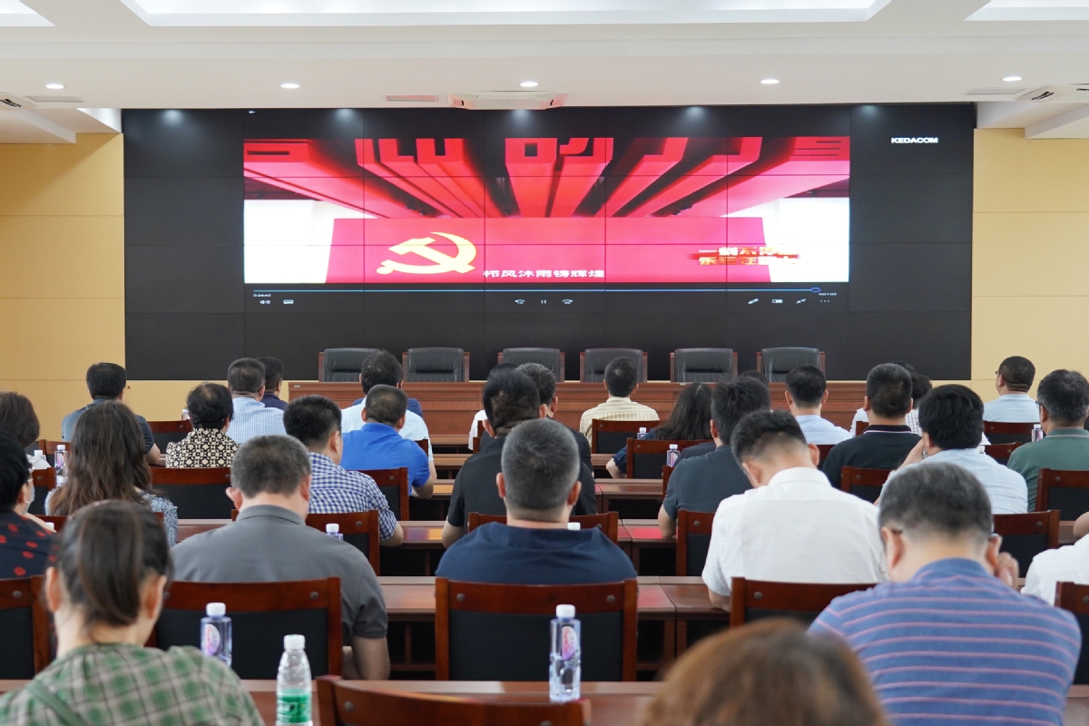 在廉政教育中心三楼“铭心展播厅”,全体干部共同观看了铜山区纪委监委拍摄的《一刻不停歇 永远在路上》警示教育片。这些身边的典型案例为全体领导干部敲响了警钟,深刻提醒着党员干部要存戒惧、知敬畏、守底线,要以案为鉴,警钟长鸣,慎始敬终,行稳致远。