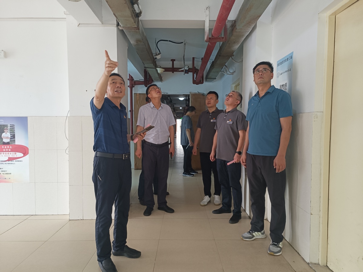 为认真贯彻落实省安委会组织开展全省重大事故隐患专项排查整治行动的部署要求,维护暑假期间校园安全稳定,7月4日上午,党委委员、副校长鲍桂楠带队开展校园安全检查。保卫处、学工处、后勤管理服务中心、智能制造学院、信电工程学院、交通工程学院、艺术设计学院等单位负责同志参加安全检查。