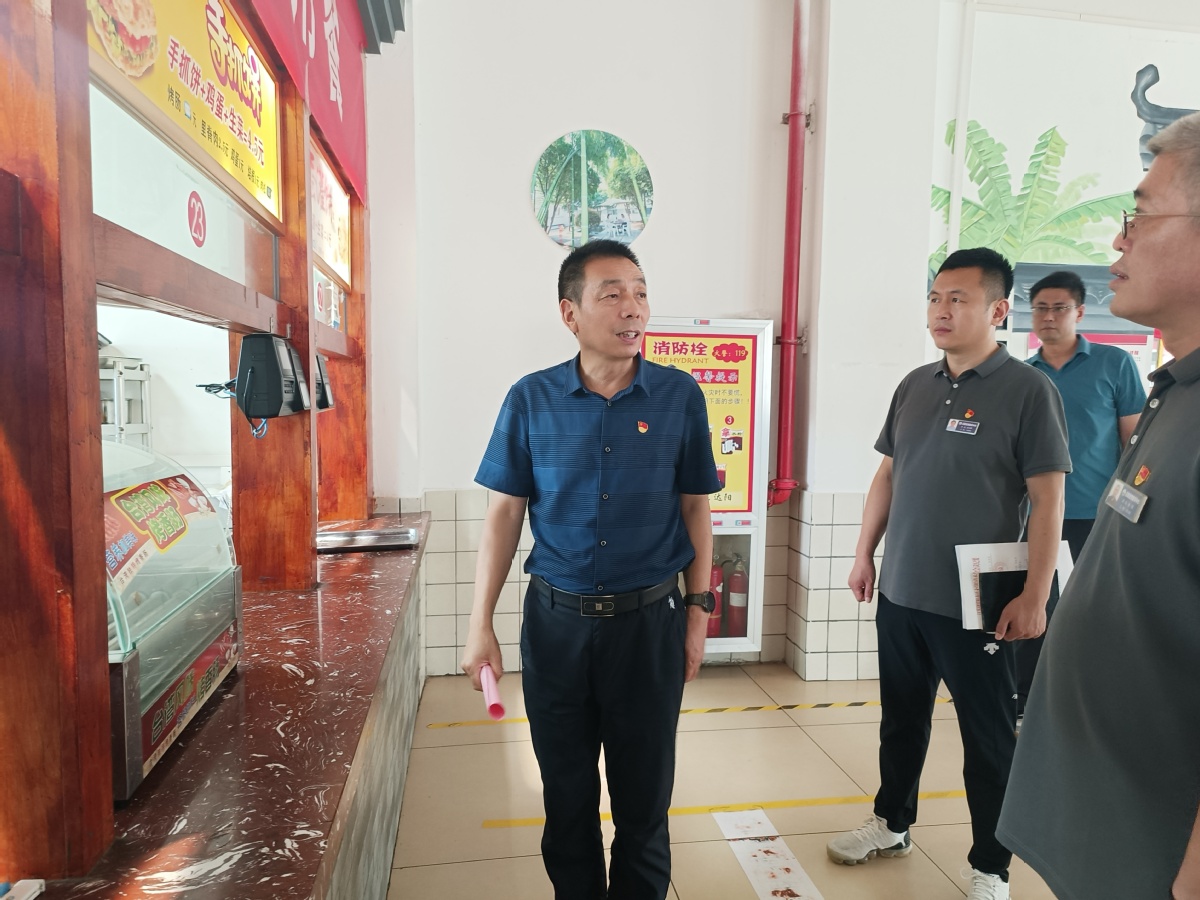 检查组首先来到学校主配电室,了解校园配电室管理及日常维保情况,要求做好维保单位的评估工作。随后,鲍桂楠带队逐层对第一实训楼的办公及实训场所进行检查,并结合现场情况就做好假期防汛、特种设备管理、高处坠落防护、消防通道清理进行详细部署。最后,检查组来到山上学生生活区,详细询问了公寓在学生放假离校期间的管理情况,耐心查看了第六食堂食品采购、存储、加工、处置的具体流程 并认真叮嘱亚园超市负责人做好放假前的“三清三关”工作。