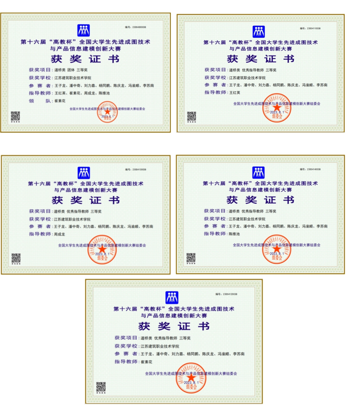近日,第十六届“高教杯”全国大学生先进成图技术与产品信息建模创新大赛(以下简称“成图大赛”)在重庆交通大学举办,我校学生在比赛中获得多个奖项。在先进成图技术赛道中,王子龙获得个人一等奖,潘中奇、刘力嘉获得个人三等奖;在桥梁数字化设计创新赛道中,李苏南、冯渝顺获得二等奖,孙博、朱宸辉获得三等奖。同时我校还获得学生团体三等奖,优秀指导教师三等奖。