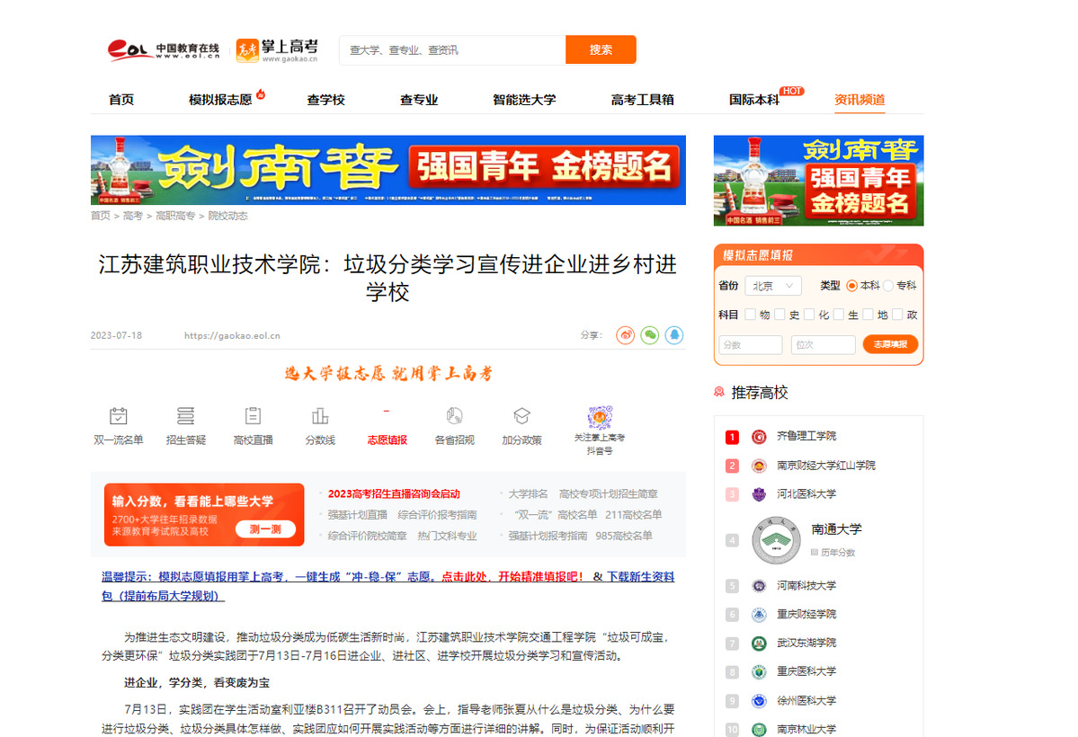 为推进生态文明建设,推动垃圾分类成为低碳生活新时尚,华体会体育交通工程学院“垃圾可成宝,分类更环保”垃圾分类实践团于7月13日-7月16日进企业、进社区、进学校开展垃圾分类学习和宣传活动。
