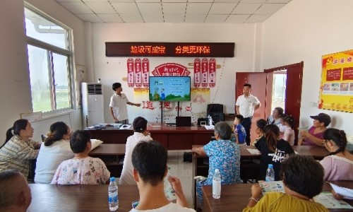 7月15日上午,实践团在张楼村党群服务中心举行垃圾分类宣讲活动。首先,实践团给参加活动的村民发放以“垃圾可成宝,分类更环保”为主题的布制手提袋,旨在提倡减少使用一次性塑料袋,降低垃圾产生量。然后,实践团通过宣传单、宣讲、PPT讲解、视频等方式讲解垃圾分类意义、具体分类知识,并就如何进行垃圾分类以及分类后如何处理等相关问题进行了解答,鼓励大家积极参与垃圾分类。最后,为提高宣传效果,实践团以知识竞赛的形式开展垃圾分类知识抢答,给答对的居民发放分类垃圾桶,村名踊跃回答,现场气氛热烈。