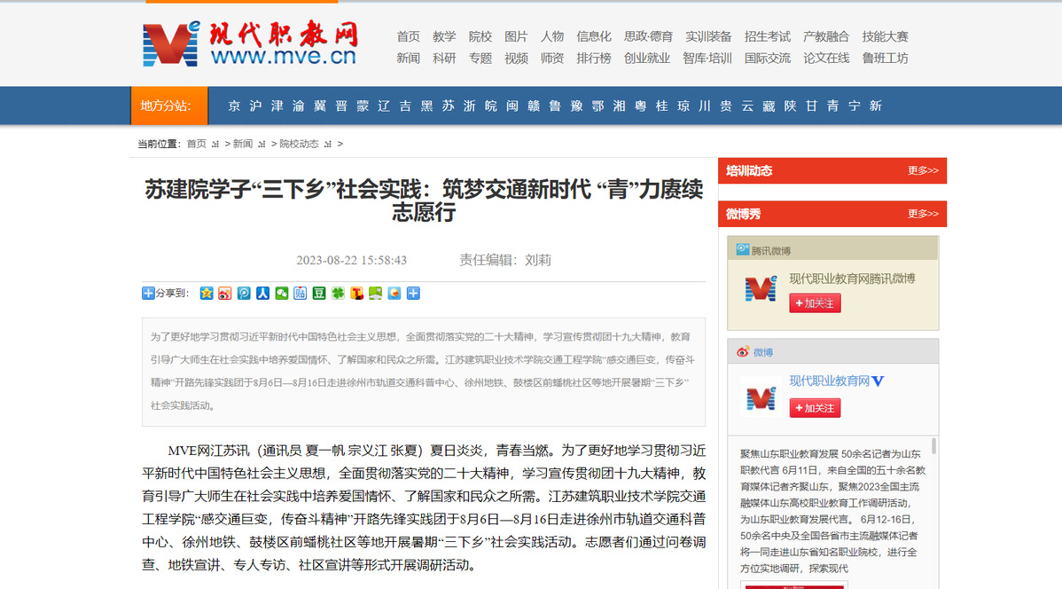 MVE网江苏讯(通讯员 夏一帆 宗义江 张夏)夏日炎炎,青春当燃。为了更好地学习贯彻习近平新时代中国特色社会主义思想,全面贯彻落实党的二十大精神,学习宣传贯彻团十九大精神,教育引导广大师生在社会实践中培养爱国情怀、了解国家和民众之所需。华体会体育交通工程学院“感交通巨变,传奋斗精神”开路先锋实践团于8月6日—8月16日走进徐州市轨道交通科普中心、徐州地铁、鼓楼区前蟠桃社区等地开展暑期“三下乡”社会实践活动。志愿者们通过问卷调查、地铁宣讲、专人专访、社区宣讲等形式开展调研活动。