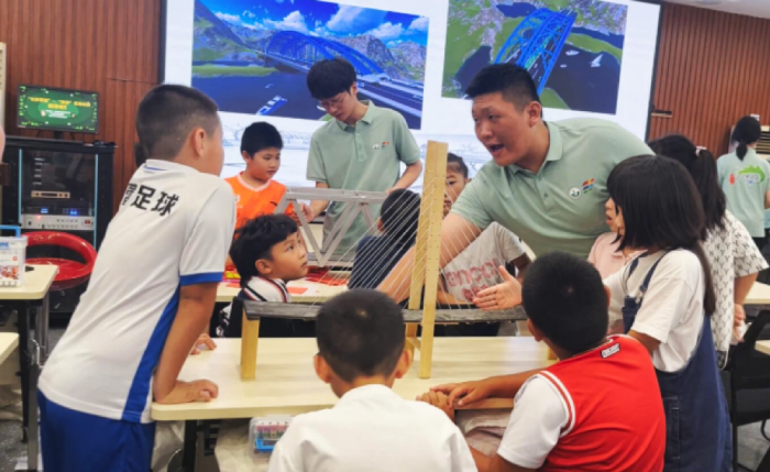 为了让小朋友们有更加直观的认知,实践团成员利用软件模拟的方式制作了一个逼真的交通场景,小朋友们争先恐后地体验其中拱桥、斜拉桥、悬索桥的立体模型,被桥梁所具备的“精妙的力与线构型”所吸引,在激动之余纷纷表达了对桥梁构造的惊叹。这种互动方式,不仅让他们感受到了科技的力量,更是将被动的交通知识转换为主观体验。