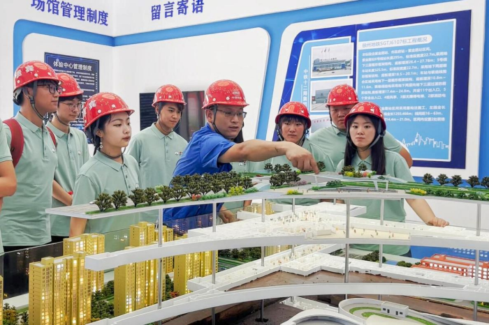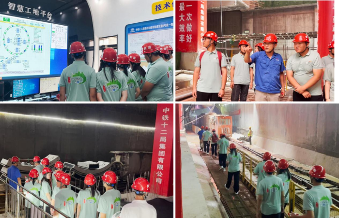 在中铁十二局徐州地铁项目部安全总监王刚经理的介绍下,队员们详细了解了紫金路站的沙盘模型构造,队员们通过近距离观察,亲眼见到了课本中描述的盾构机,对于其构造原理和工作流程有了更加直观的理解。除此之外,智慧工地平台结合了物联网、大数据、云计算等技术,通过实时数据采集、分析和处理,提供了一种智能化的管理和监控手段,为施工现场提供了诸多便利和优势。