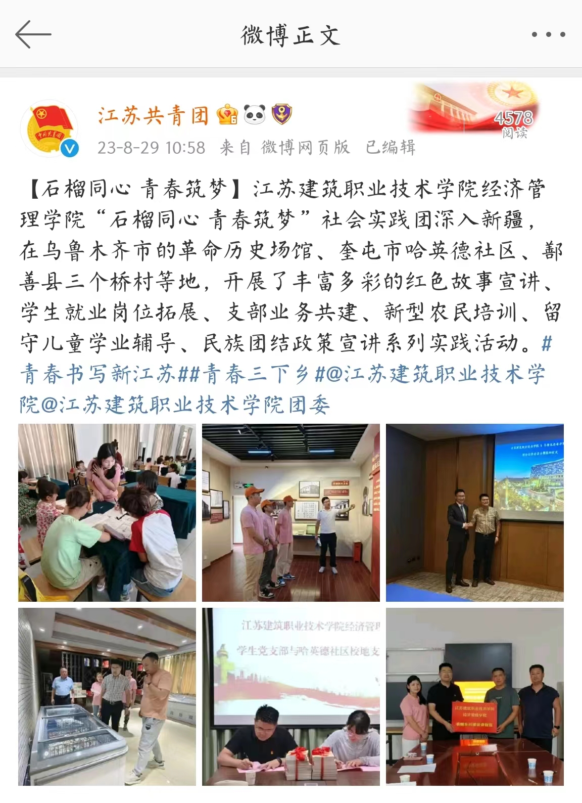华体会体育经济管理学院“石榴同心 青春筑梦”社会实践团深入新疆,在乌鲁木齐市的革命历史场馆、奎屯市哈英德社区、鄯善县三个桥村等地,开展了丰富多彩的红色故事宣讲、学生就业岗位拓展、支部业务共建、新型农民培训、留守儿童学业辅导、民族团结政策宣讲系列实践活动。