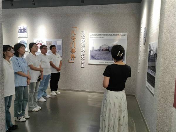 追溯历史,扎根巍巍中华大地;拥抱未来,走过泱泱文明河流。“行走的‘青春课堂’”实践团成员走进江苏首批红色地标——“八号门事件”旧址。在史料馆内,大家认真听取讲解员的讲解,通过缅怀先烈事迹,学习革命先辈敢为人先、不惧艰难、勇于斗争的红色革命精神,铭记中国人民不畏牺牲的爱国主义精神。