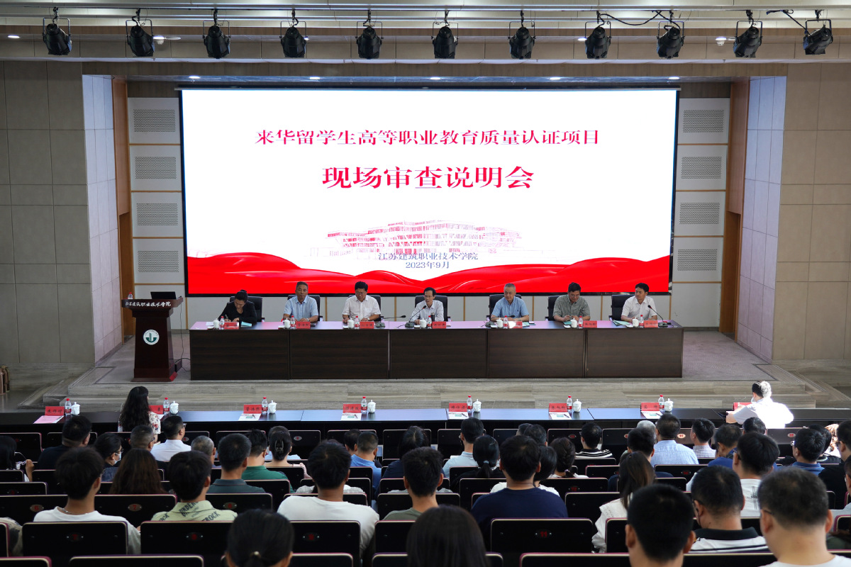 9月15日,来华留学生高等职业教育质量认证项目现场审查说明会在学校图书馆报告厅召开。学校来华留学生高等职业教育质量认证领导小组成员,党委办公室、党委组织部、发展规划处、教务处、人事处、学生工作处、国际交流与合作处、保卫处、实验实训管理处、后勤管理服务中心主要负责人,各二级学院主要负责人、教学管理人员及部分教师代表参会,朱作付主持会议。