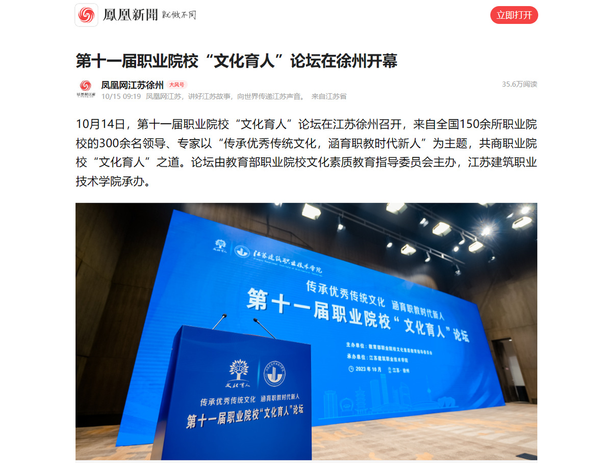 10月14日,第十一届职业院校“文化育人”论坛在江苏徐州召开,来自全国150余所职业院校的300余名领导、专家以“传承优秀传统文化,涵育职教时代新人”为主题,共商职业院校“文化育人”之道。论坛由教育部职业院校文化素质教育指导委员会主办,华体会体育承办。