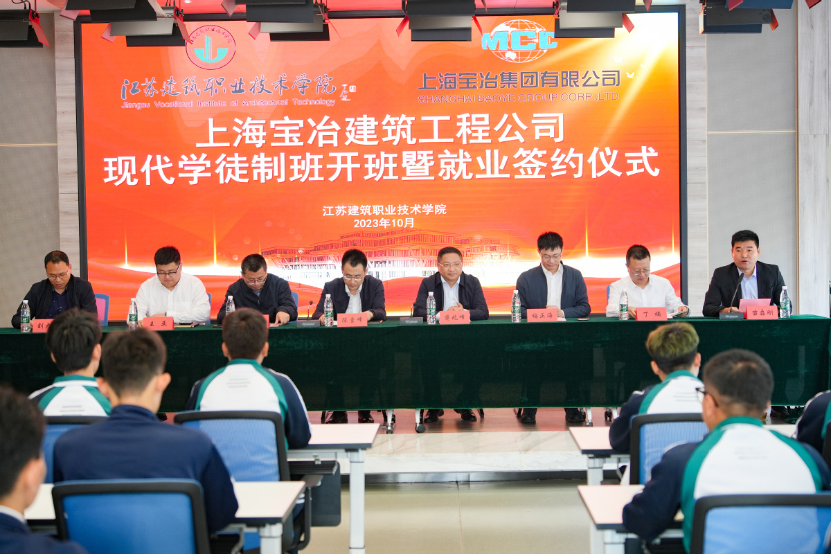 据悉,本届上海宝冶建筑工程公司现代学徒制班33名学生分别来自工程造价与建设工程管理专业,所有学生均已完成就业协议签约,下一步将进入校企联合培养阶段。
