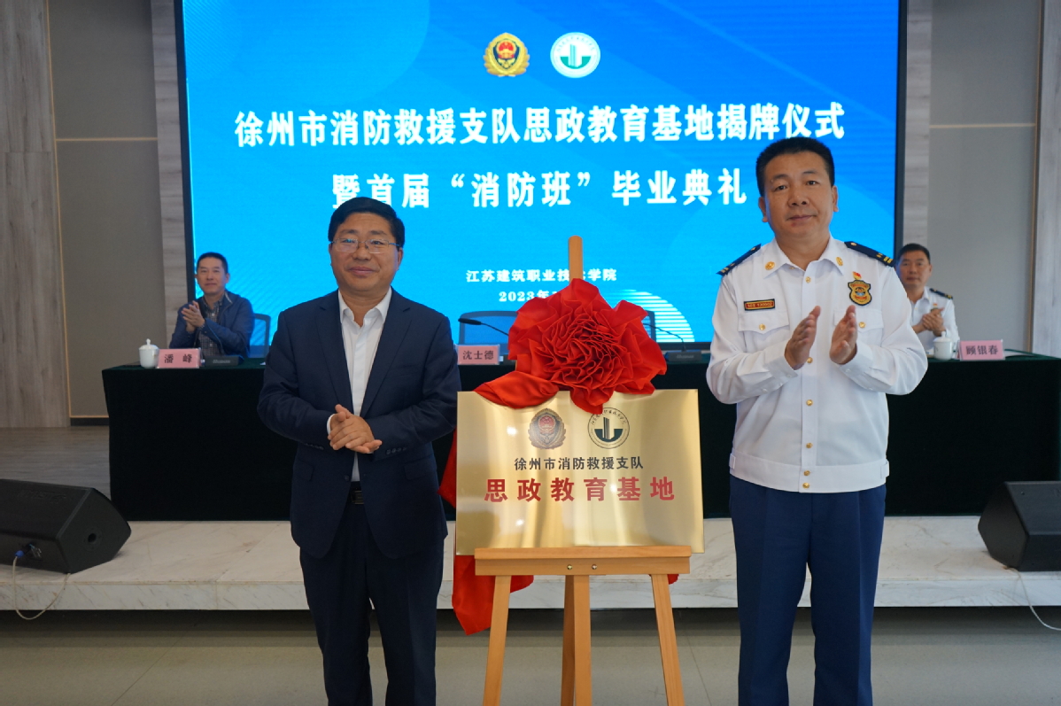 10月17日,徐州市消防救援支队思政教育基地揭牌仪式暨首届“消防班”毕业典礼在我校举行。党委副书记、校长沈士德,党委委员、副校长刘海波,徐州市消防救援支队政治委员张义林、政治部主任徐刚、一级督导员顾银春,首届“消防班”毕业生以及相关部门负责人参加此次活动。继续教育学院院长潘峰主持此次活动。