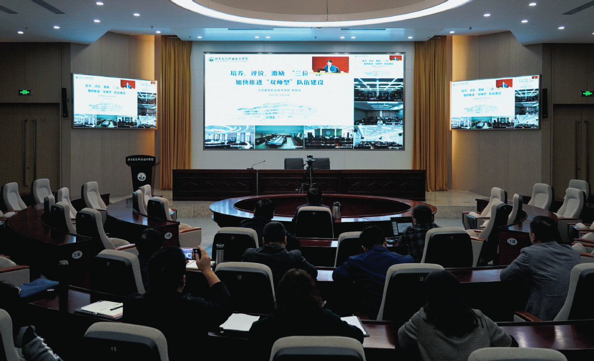 会上,朱东风以《培养、评价、激励“三位一体” 加快推进“双师型”教师队伍建设》为题,分别从“健全‘双师型’教师多维立体培养体系”“深化‘双师型’教师分层分类评价改革”“强化‘双师型’教师自我成长激励机制”三个方面介绍了我校在“双师型”教师队伍建设方面的做法和成效。