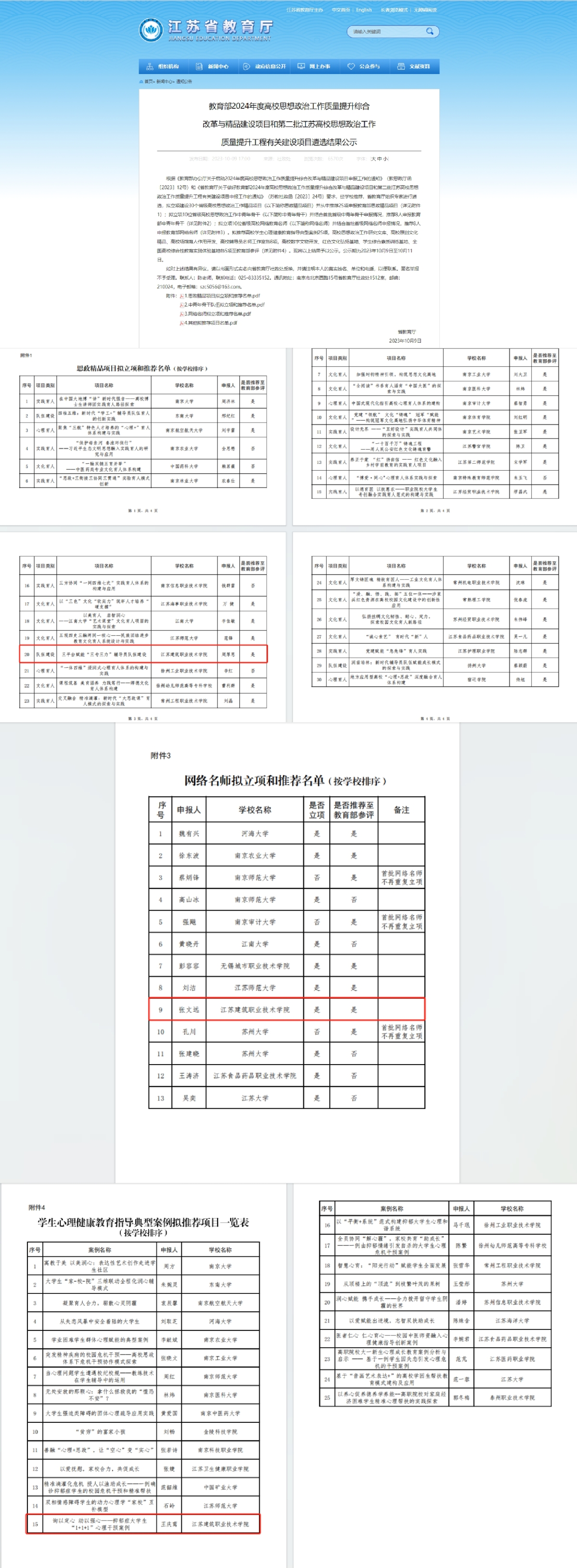 据悉,本年度省教育厅共立项建设30个省级高校思想政治工作精品项目,其中25项被推荐申报教育部思政精品项目;立项10位省级高校网络教育名师,其中8人被推荐申报教育部网络名师;25项高校学生心理健康教育指导典型案例被推荐至教育部参评。