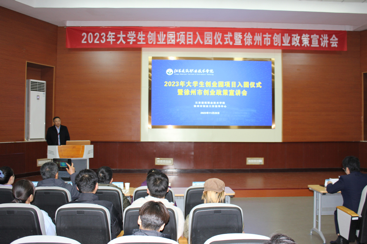 近日,我校在创翼学堂举行2023年大学生创业园项目入园仪式暨徐州市创业政策宣讲会。党委委员、副校长蒋兆峰,徐州市创业指导中心主任殷飞、副主任王枫,各二级学院创业工作负责人,创业园项目团队及指导老师等参加活动。