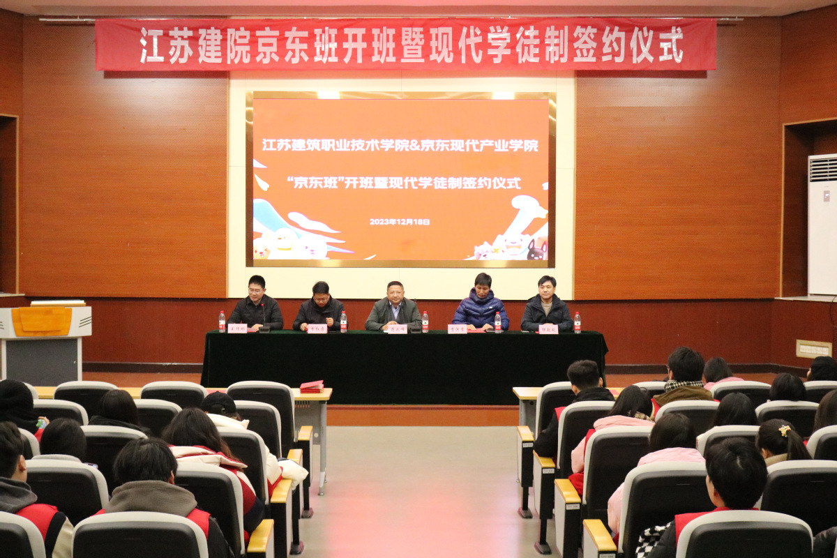 12月18日,我校京东现代产业学院举行“京东班”开班暨现代学徒制签约仪式。党委委员、副校长蒋兆峰,京东教育研究院经理李宏彦,教务处、经济管理学院等相关部门负责人及师生代表参加仪式。