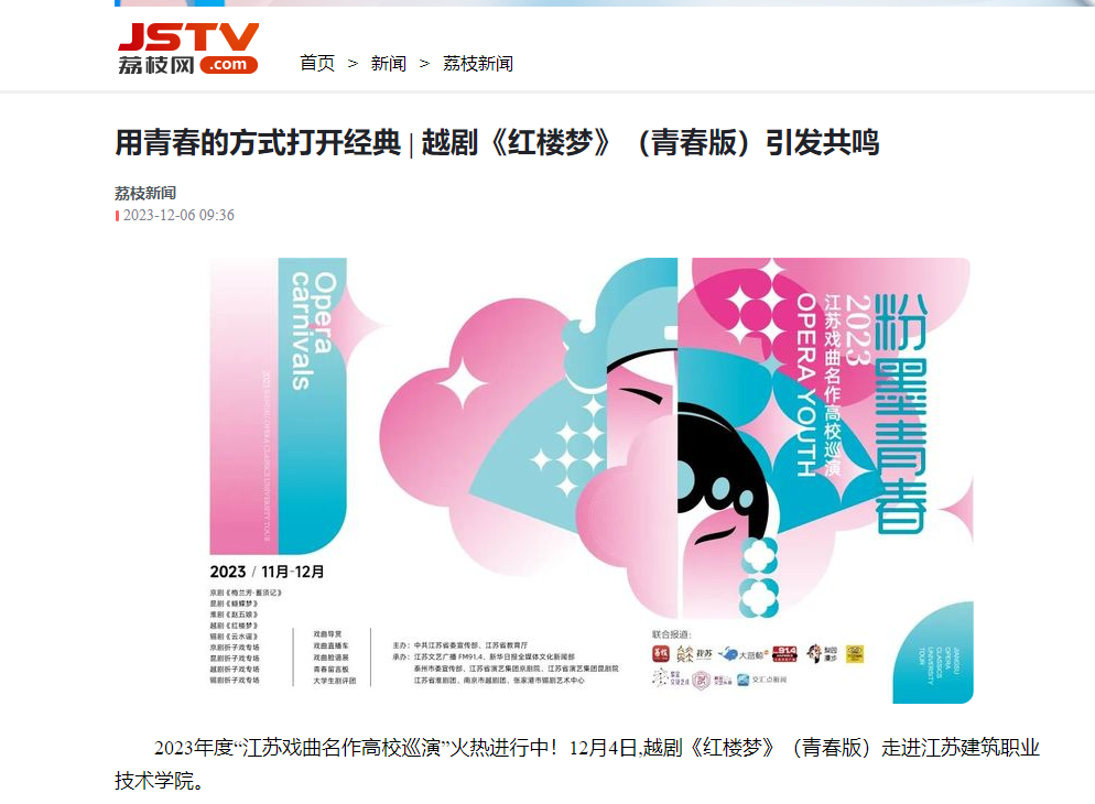 2023年度“江苏戏曲名作高校巡演”火热进行中!12月4日,越剧《红楼梦》(青春版)走进华体会体育。