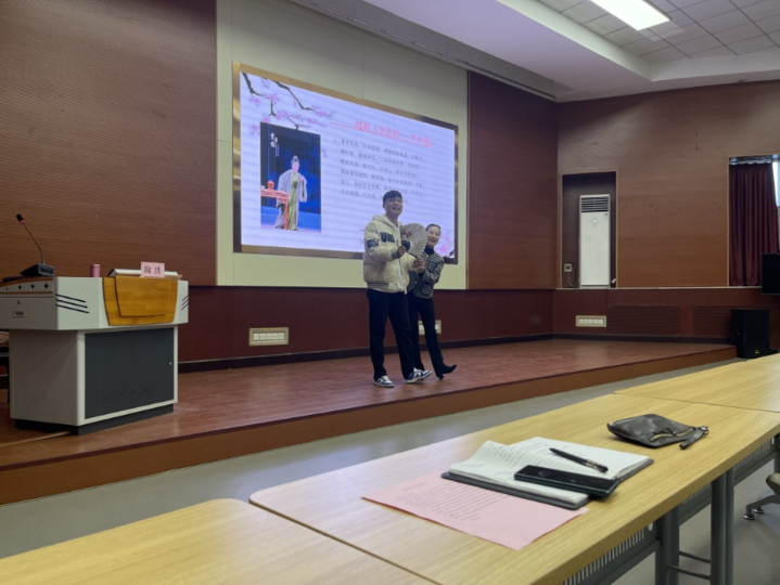 陶琪以通俗易懂的语言向同学们介绍了越剧的起源、发展,并通过现场演示和互动的方式,带领同学们一起体验戏曲的身段、唱腔,了解越剧的表演技巧和艺术魅力。