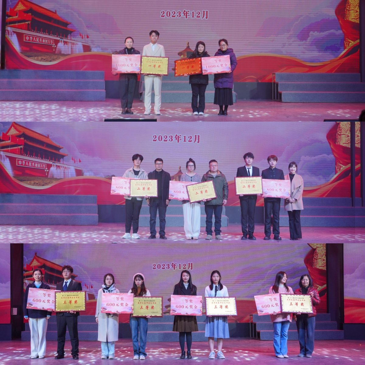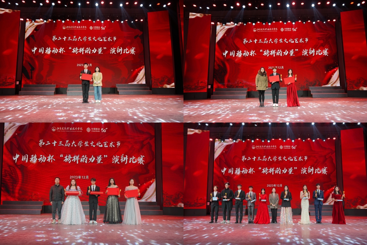 最终,信电工程学院、建筑建造学院获师生咏颂会一等奖,建筑建造学院测量23-3班王子豪获演讲比赛一等奖,建筑建造学院地下22-1班张哲获校园歌手大赛一等奖。艺术作品展现场展示了经专业评委评定选出的60幅作品。
