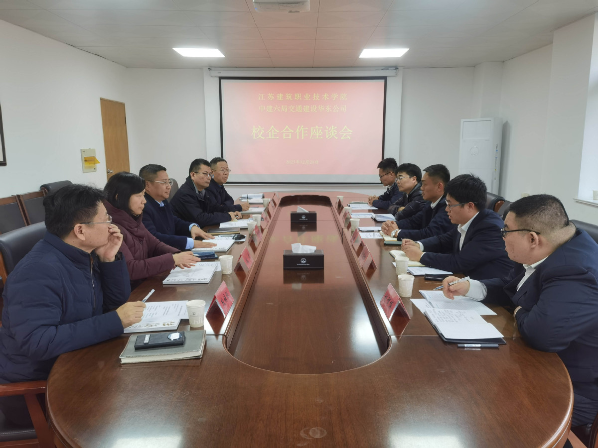 为进一步加强校企合作,推进产教深度融合,拓展毕业生就业渠道,保证毕业生就业质量,12月28日下午,我校与中建六局交通建设华东公司在学校第二会议室开展校企合作座谈会。党委委员、副校长蒋兆峰,中建六局交通建设华东公司总经理杨扬出席会议,校企合作处、交通工程学院及企业相关部门负责人参加会议。