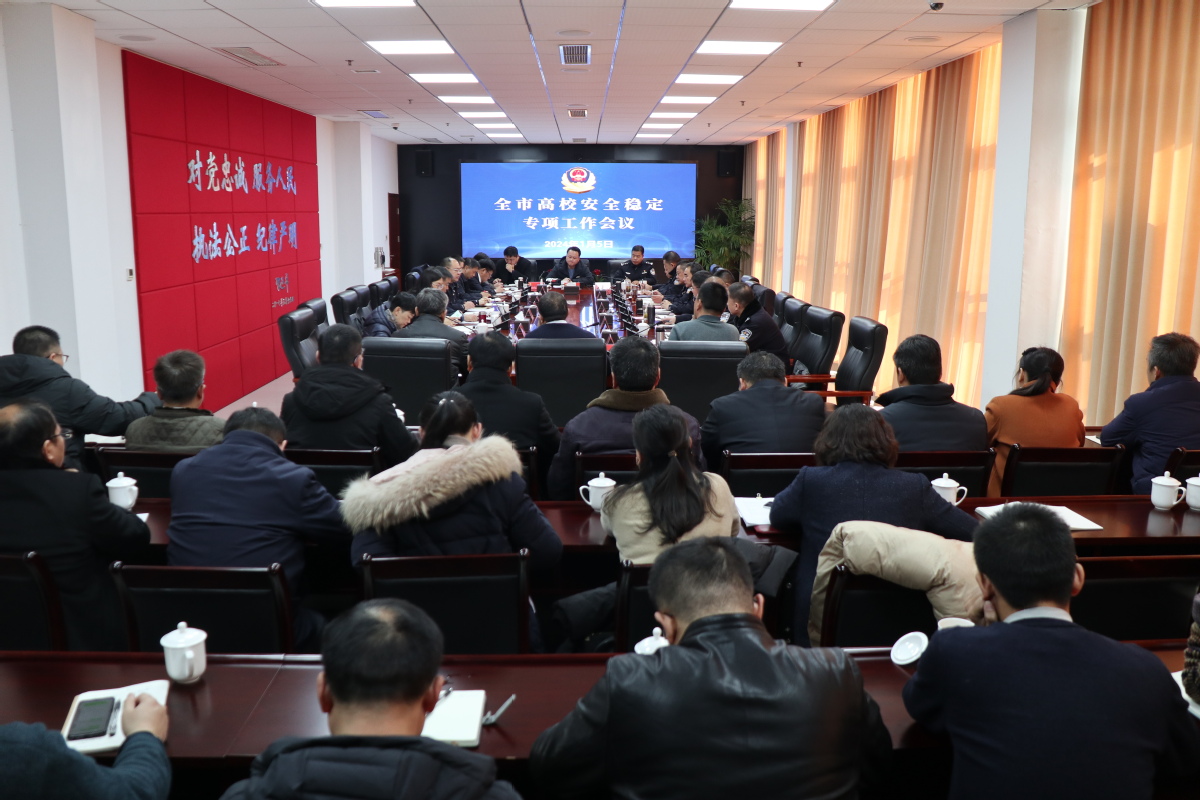 随后,黄玉柱分析通报了2023年国内外安全稳定工作形势,对2024年校园安全稳定工作进行了部署。他指出,各高校要强化信息收集,提前感知风险,做好应急处置;突出重点管控,关注重点人员、重要时间节点;严密网络巡查,严防网络舆情事件;加强警务室建设,主动靠前服务师生。同时,他就下一步做好高校安全稳定工作提出三点要求:一是提高政治站位,研判安全风险,压实安全责任,不断增强安全稳定工作的紧迫感、责任感;二是强化处置落实,守好安全底线,各高校要从本单位实际出发,科学制定应急预案,加强应急处置培训演练,提高应急处置响应速度及处置能力,完善校园突发事件应急处置机制;三是加强组织协同,汇聚工作合力,进一步深化校园警务室建设,完善警校信息共享、会商研判、联动处置等协作机制,形成工作合力,确保校园安全稳定。