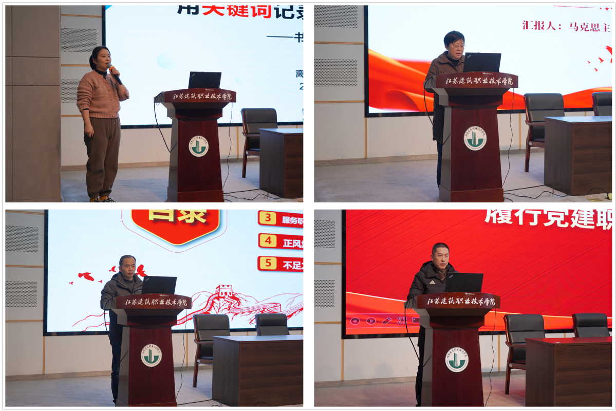 会前,各党总支、直属党支部书记向学校党委书记提交了书面述职报告。会上,建筑建造学院党总支、建筑管理学院党总支、智能制造学院党总支、经济管理学院党总支、离退休党总支、马克思主义学院党支部、图书馆党支部、继续教育学院党支部等8位书记进行了现场述职。述职紧扣基层党建难点堵点痛点问题,特别是主题教育总结评估和上年度查摆发现的问题,讲清履职尽责抓党建的硬招实招,既有党建成果展示和经验介绍,也有履职体会和工作分析。
