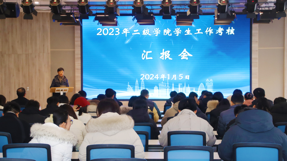 为进一步总结学生工作特色,凝练育人模式,展示工作成果,1月5日下午, 2023年二级学院学生工作考核汇报会在科技园路演大厅举行。校党委副书记梁惠出席会议并作总结讲话。党委组织部、党委宣传部、教务处、学工处、团委等部门负责人,二级学院党总支副书记及全体专职辅导员参加会议。