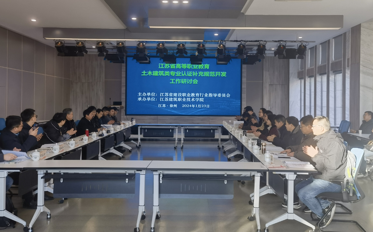 1月23日,由江苏省建设职业教育行业指导委员会(以下简称省建设行指委)主办的江苏省高等职业教育土木建筑类专业认证补充规范研制工作研讨会在我校举行,党委副书记、校长沈士德,党委委员、副校长刘海波出席研讨会议。