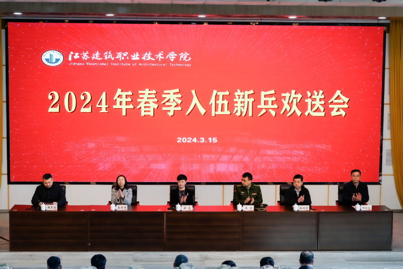 3月15日上午,我校在校图书馆报告厅举行2024年春季入伍新兵欢送会。徐州市泉山区人民武装部军事科科长杨浩,校党委副书记梁惠,组织部、宣传部、人武部、团委等负责同志,各二级学院党总支副书记、征兵辅导员、学生家长代表及42名入伍新兵参加欢送会。