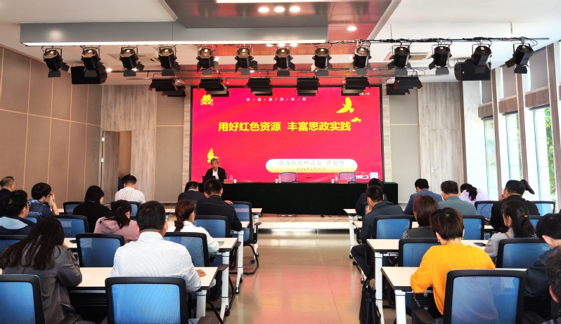 5月11日下午,徐州市淮海战役暨区域红色文化研究会会长、淮塔管理局原局长蒋越锋受邀来我校作题为《用好红色资源 丰富思政实践》的专题报告。党委委员、副院长蒋兆峰,我校全体思政课教师、专职辅导员及“青马班”学生参加此次报告会。报告会由马克思主义学院院长邓鹏主持。