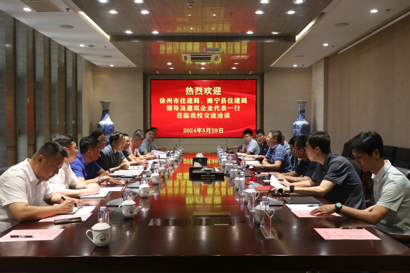 5月29日上午,徐州市住建局建筑业管理处处长岳林,睢宁县住建局党组书记、局长朱洪流及企业代表一行来访我校洽谈县域联合体建设。校党委委员、副校长蒋兆峰,相关职能部门和二级学院负责人参加座谈会。