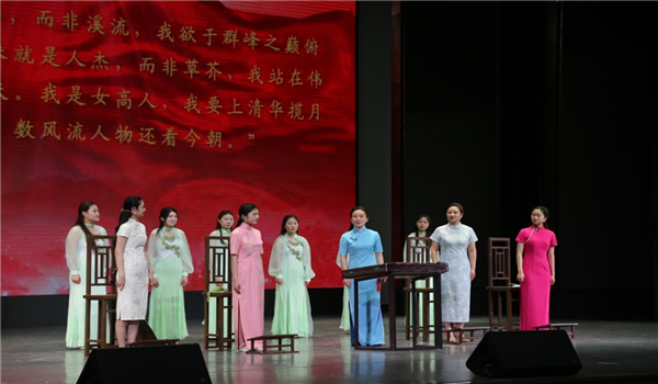 系列活动中,徐州琴书——《时代楷模张桂梅》在华体会体育会堂精彩上演。该作品由国家一级演员、徐州琴书代表性传承人徐妮娜创作并主演,深情讲述了时代楷模张桂梅在华坪县民族中学任教期间,克服重重困难创办女高,用坚韧和执着书写教育传奇的感人故事。徐妮娜老师用深情的唱腔和精湛的演技,将张桂梅的奉献精神和高尚师德展现得淋漓尽致,深深打动了现场师生。