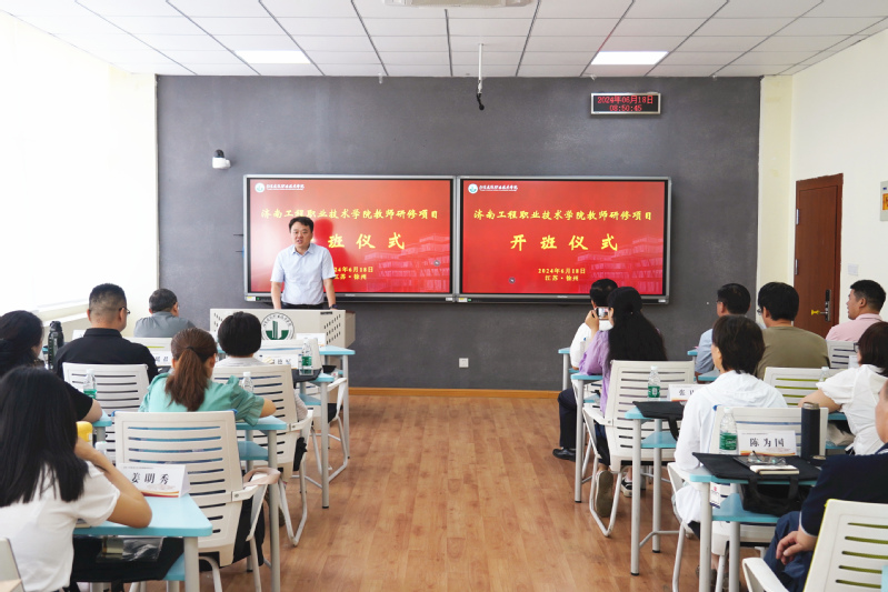 近日,济南工程职业技术学院教师研修项目开班仪式在我校教一楼举行。党委副书记、校长沈士德,两校人事处、我校建筑建造学院主要负责同志及18名参培教师参加开班仪式。