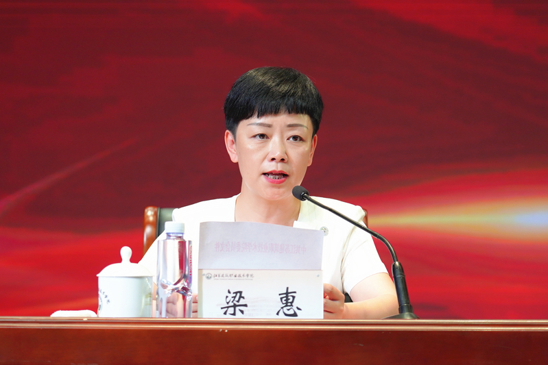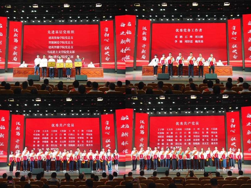 会上,梁惠宣读表彰决定。与会领导向先进基层党组织颁发奖牌、向优秀党务工作者和优秀共产党员颁发荣誉证书。先进基层党组织、建筑装饰学院党总支书记娄志刚,优秀共产党员、马克思主义学院教师叶贵梅交流发言。