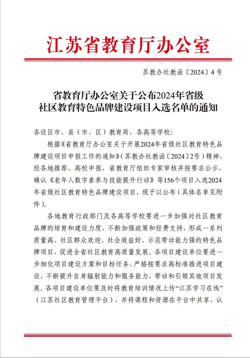据悉,今年全省共有156个社区教育特色品牌项目入选建设项目,省教育厅加强对社区教育品牌的培育和建设力度,以期形成一系列质量高、社区群众欢迎、社会效益好、示范带动能力强的特色品牌项目,促进全省社区教育高质量发展。