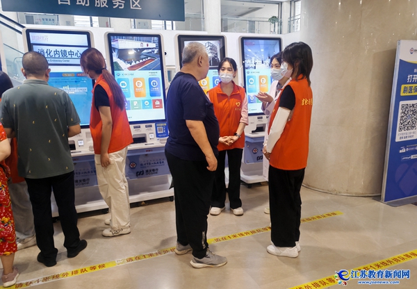 6月24日和29日,实践团前往徐州市第一人民医院、地铁站等人流密集的公共场所开展基层服务。实践团设置了网络服务志愿岗,提供的预约挂号、排队叫号、咨询沟通等志愿服务,有效缓解了门诊高峰期的压力,提升了患者的就医体验和满意度。在徐州地铁师范大学站,同学们为乘客提供一站式服务,辅助中老年乘客操作网络智能设备,帮助老年人无障碍地完成购票流程。