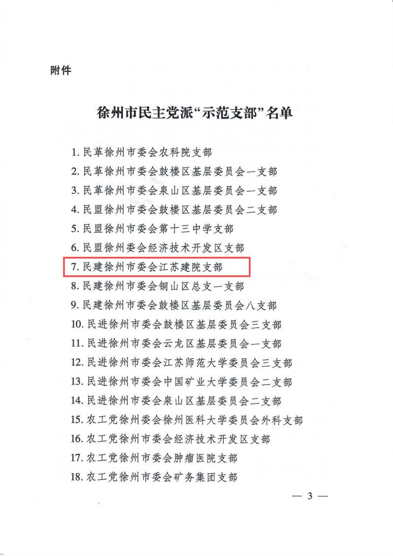 近日,中共徐州市委统战部对2023年度徐州市民主党派“示范支部”创建活动作出评选表彰,我校民建支部获徐州市民主党派基层组织“示范支部”称号。