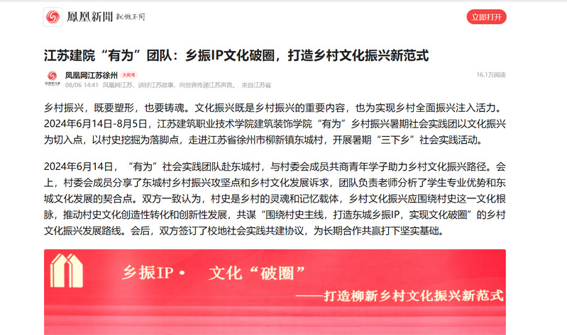 乡村振兴,既要塑形,也要铸魂。文化振兴既是乡村振兴的重要内容,也为实现乡村全面振兴注入活力。2024年6月14日-8月5日,华体会体育建筑装饰学院“有为”乡村振兴暑期社会实践团以文化振兴为切入点,以村史挖掘为落脚点,走进江苏省徐州市柳新镇东城村,开展暑期“三下乡”社会实践活动。