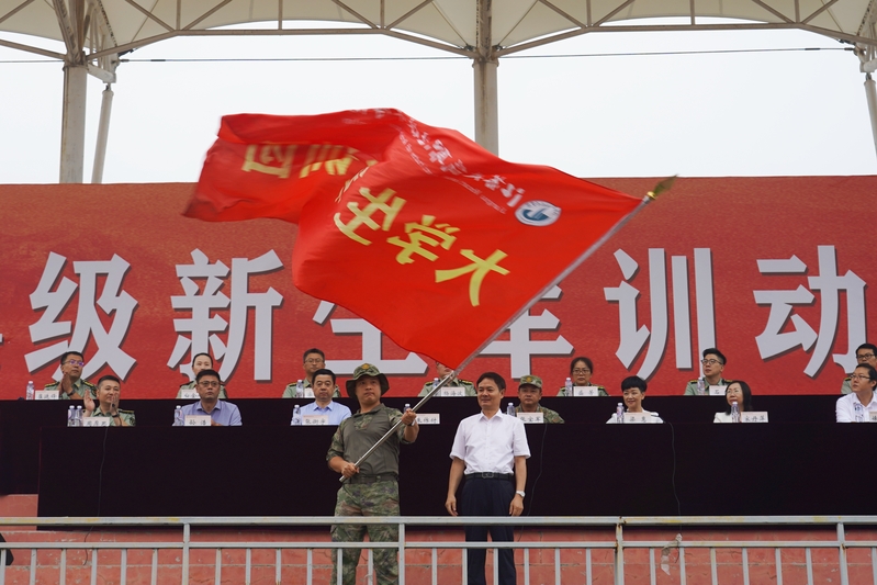 最后,朱作付代表学校向承训部队颁授军训团团旗。