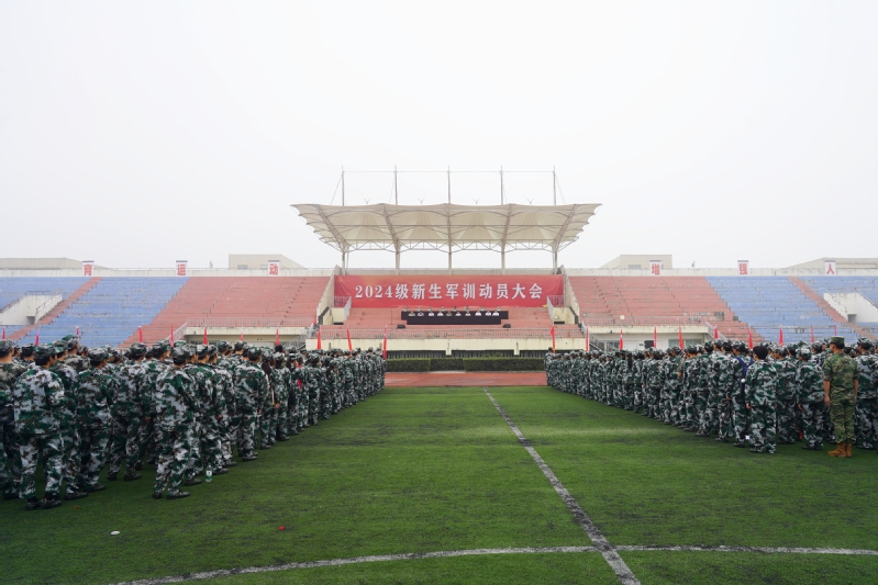 9月14日上午,我校2024级学生军训动员大会在学校西操场举行。党委副书记梁惠,王杰部队副政治委员张宝军,党委委员、纪委书记朱作付出席动员大会。校相关职能部门负责人、各二级学院党总支副书记、全体承训教官,专兼职辅导员及4900余名2024级新生参加动员大会。