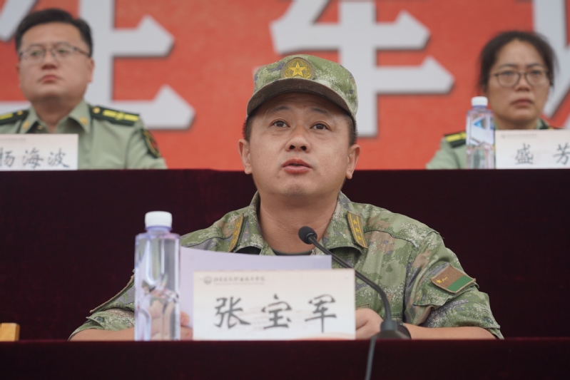 张宝军代表承训部队讲话。他指出,参训教官将会以严格的标准、科学的方法、认真的态度来组织训练,做到以身作则,言传身教,将军队的优良作风和纪律要求传递给学生。同时他希望参训学生在接下来为期两周的军事技能训练中能够发扬不怕苦、不怕累的精神,以饱满的热情和昂扬的斗志迎接考验。