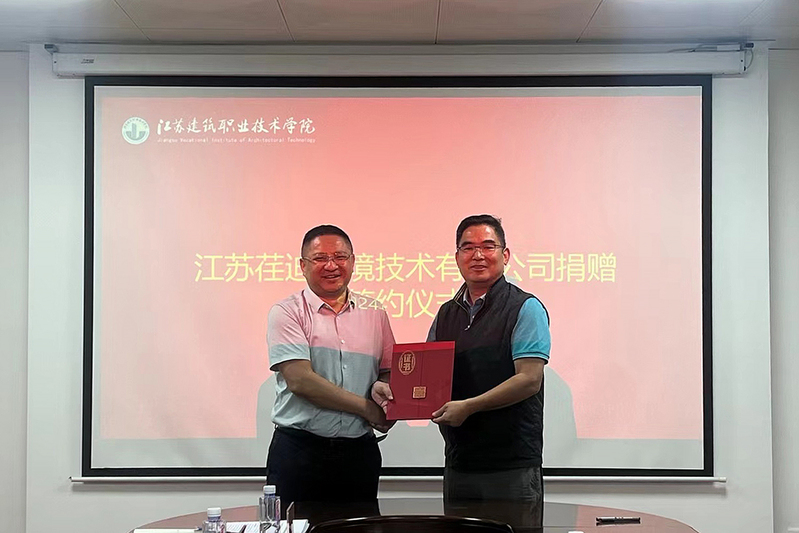 为支持我校建筑设备类专业教学创新团队建设,提升专业人才培养质量,推进校企合作多元化发展,江苏荏迪环境技术有限公司向我校捐赠了价值60万元的仪器设备。10月9日下午,捐赠仪式在学校行政楼第二会议室举行,党委委员、副校长蒋兆峰,江苏荏迪环境技术有限公司总经理任现坤、技术经理韩海金,学校校企合作处、建筑智能学院等单位负责人参加仪式。